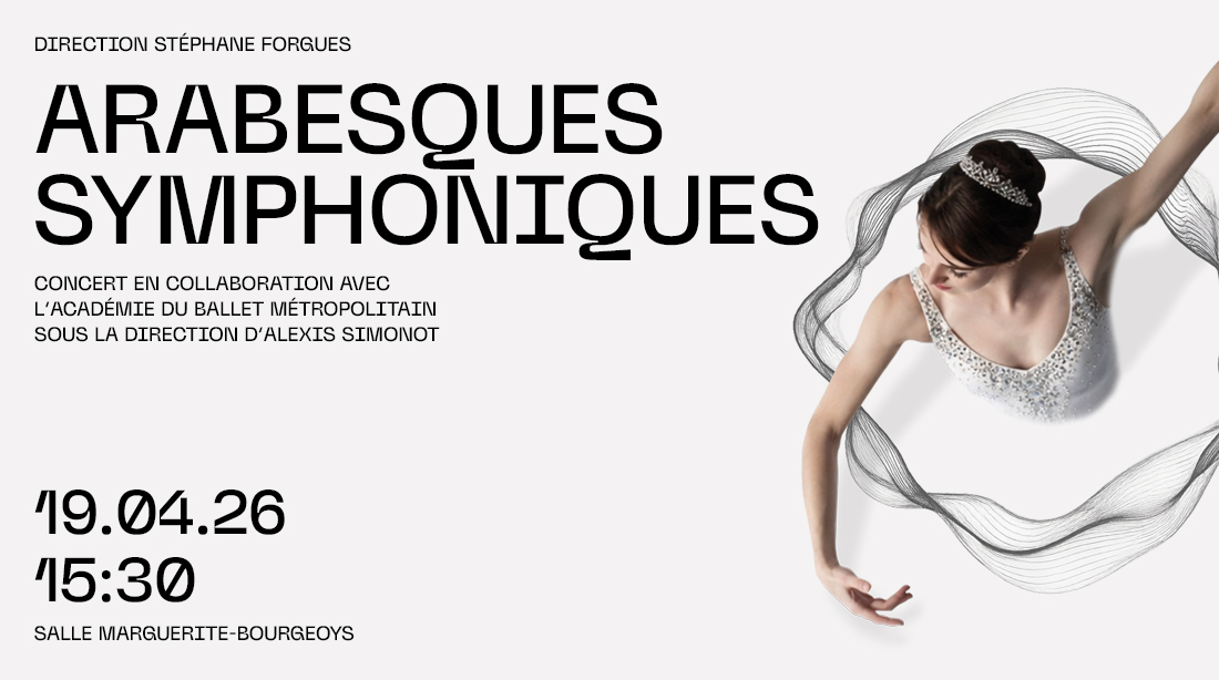 Duos 21 novembre 2025 – 19h30 (ouverture des portes à 19h00) Voir le programme PDF La Philharmonie jeunesse de Montréal présente le concert Duos. Au programme : la fougueuse Rhapsodie Hongroise de Liszt, l’enlevant Concerto pour deux pianos de Poulenc, interprété par Josée Caron et Carmen Picard, ainsi qu’une superbe version symphonique du célèbre Clair de […]